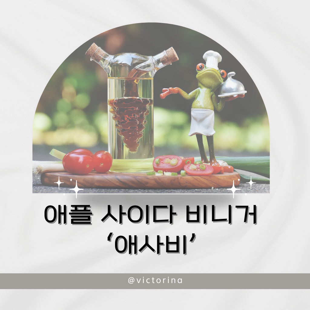 애사비는 애플사이다비니거의 줄임말로 식초의 일종으로 사과즙에 효모와 박테리아를 넣어 자연 그대로 발효시켜 만들어진 것입니다. 일반 사과 식초와는 달리 미생물에 의해 알코올이 에탄올을 아세트산으로 바뀌는 두 번의 자연 발효 과정을 거치게 되며 아세트산뿐만 아니라 카테킨, 글로코겐산과 같은 항산화 성분과 펙틴 그리고 칼륨을 포함한 여러 미네랄 성분이 함유되어 있습니다.