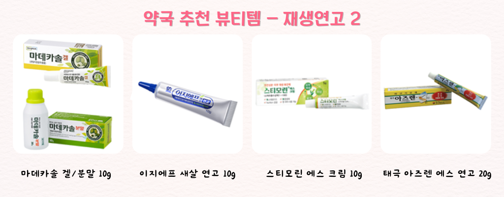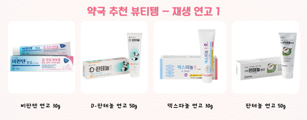 최근 약국에서는 화장품에 사용되는 성분들이 포함된 연고가 관심받고 있습니다. 이 제품들은 저렴한 비용으로 보습, 재생, 주름, 미백 기능 등의 효과 볼 수 있으며 처방 없이 구매할 수 있는 '일반의약품' 이여서 누구나 쉽게 구매가 가능한 만큼 안전한 제품입니다.