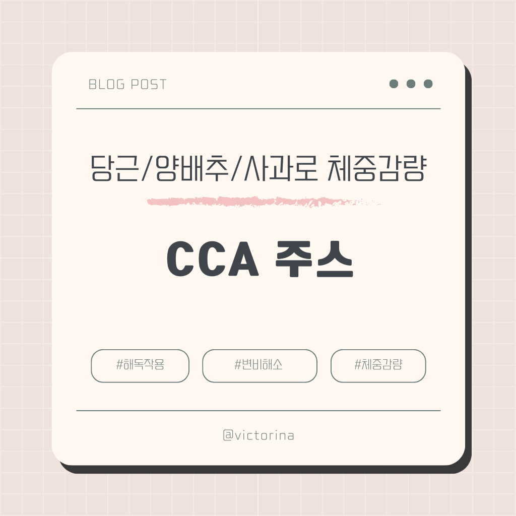 옷이 얇아지는 계절이 오고 있습니다. 다이어트를 위해 아무리 운동을 많이 해도 먹는 음식이 가공식품과 기름진 음식이라면 우리 몸은 좋아질 수가 없습니다. 운동하기 전 섭취하는 음식을 먼저 바꾼다면 우리가 하는 운동에 시너지를 줄 수 있을 것입니다. 그럼 무엇을 먹어야 할까요? 바로 CCA 주스입니다.