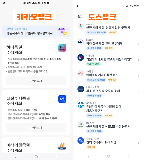 | 토스뱅크 | 8개 | 하나증권, LS증권, 키움증권, SK증권, 미래에셋증권, 유안타증권, DB증권, 한국투자증권 |