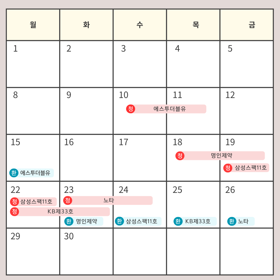 ** 청약일정과 청약 종목은 변경되거나 수정될 수 있습니다.